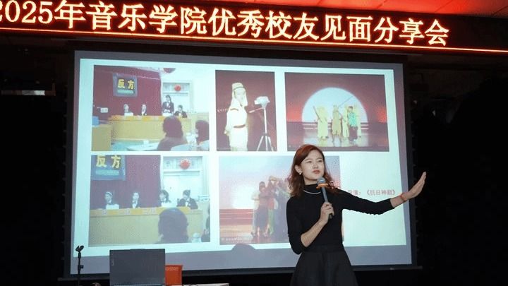 会上,李文蛟讲述了从基层中学教师成长为临夏县文化旅游投资发展有限责任公司总经理的奋斗经历,他结合工作实践,分享了如何将音乐专业知识与当地民族文化融合,助力铸牢中华民族共同体意识教育的生动故事;杨丽媛员工回顾了从母校毕业后的工作历程和职业发展,为学弟学妹的职业规划树立了标杆,打破了专业发展的固有边界认知。