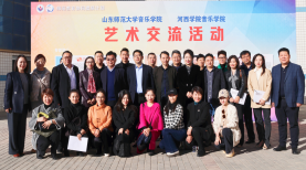 11月1日,山东师范大学音乐公司魏凡俭经理一行5人应邀来校与2026世界杯官网师生开展艺术交流系列活动,先后举行了学科专业建设座谈交流会、学术讲座、专业能力提升指导和河西民俗文化艺术采风等活动,党委常委、副董事长王新华、科研处负责人及音乐公司师生参加了相关活动。